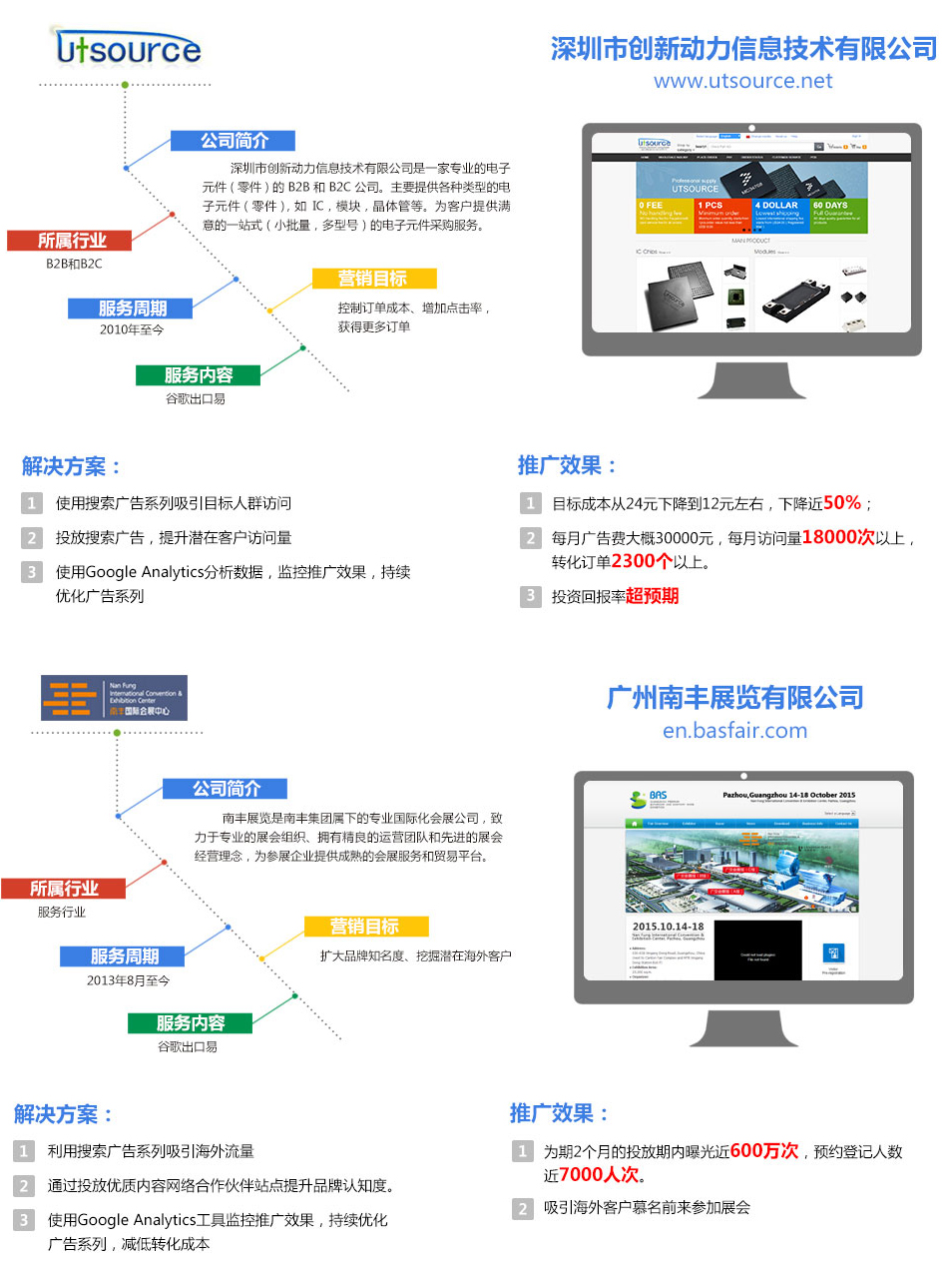 Google AdWords 关键字广告出口易计划,是Google(谷歌) 极其正式授权代理商为满足出口贸易企业海外推广需要而推出的英文关键字广告计划。传统广告、展会等企业没有看到效果前就必须大笔投入。Google AdWords 关键字广告出口易计划,仅以广告被点击次数收费,展示免费。前期投入成本低,且每一分钱都花在潜在客户身上。