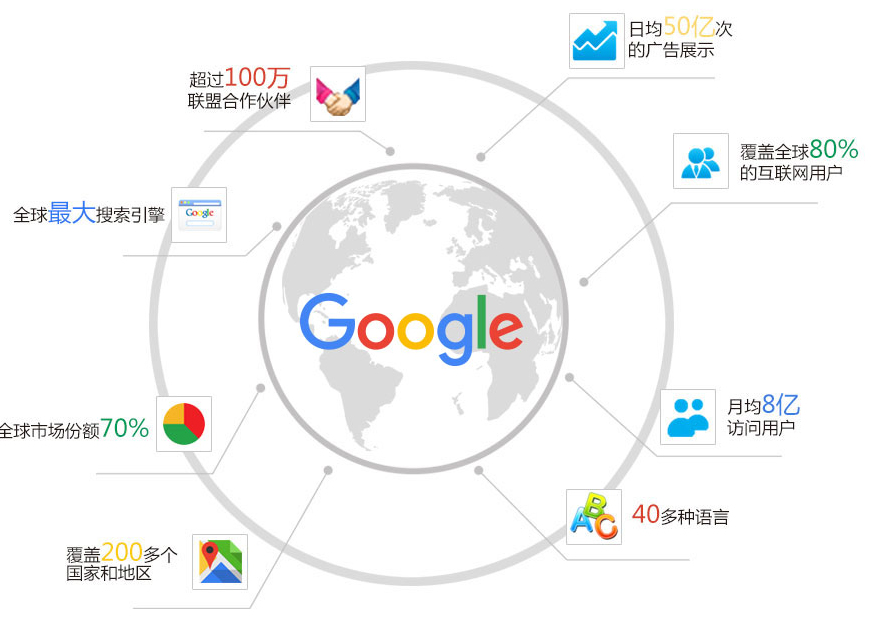 Google AdWords 分为广告、品牌广告、效果展示广告,三大类产品在各环节接触到您的目标客户,最大程度上覆盖 潜在客户资源,带来销售机会!